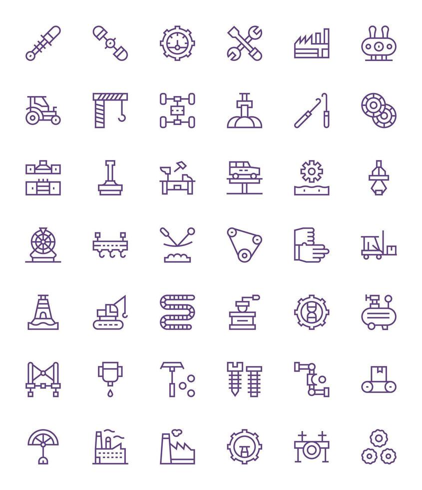 42 Pixel Optimized Regular Line Icons designed for Machinery Interface vector