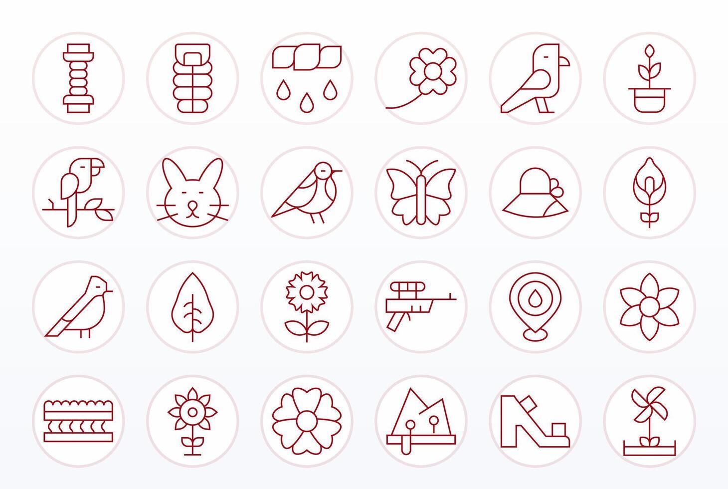 Spring Visual Pack containing 24 Thin Line Editable Icons vector