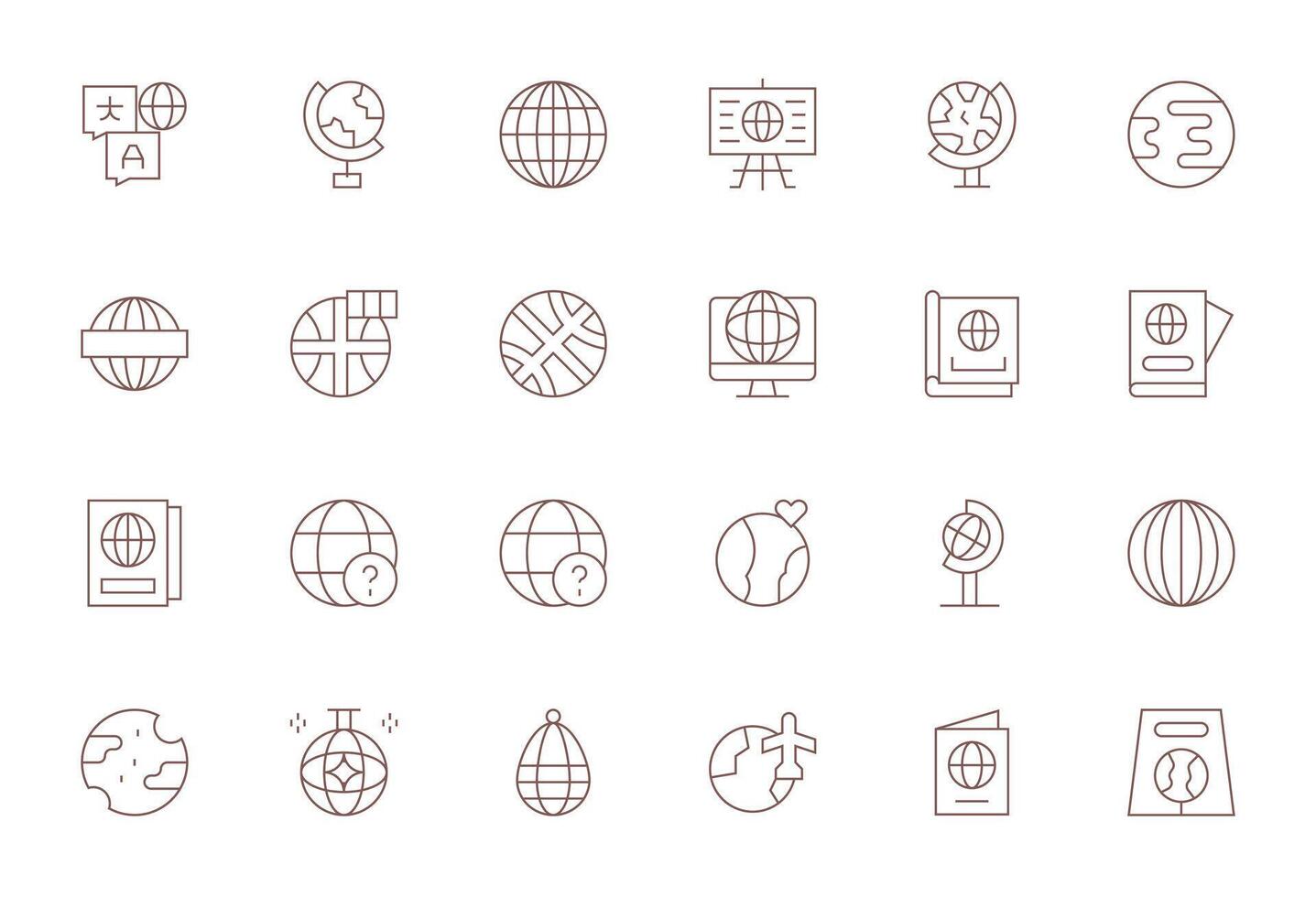 24 Thin Line Icons designed for Globe in 128x128 Display Perfect format vector