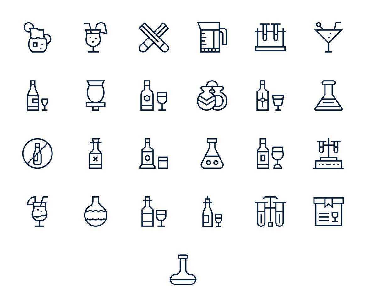 Glassware Modern Collection with 25 Regular Line High Resolution Grid Fitted Icons Free Vector