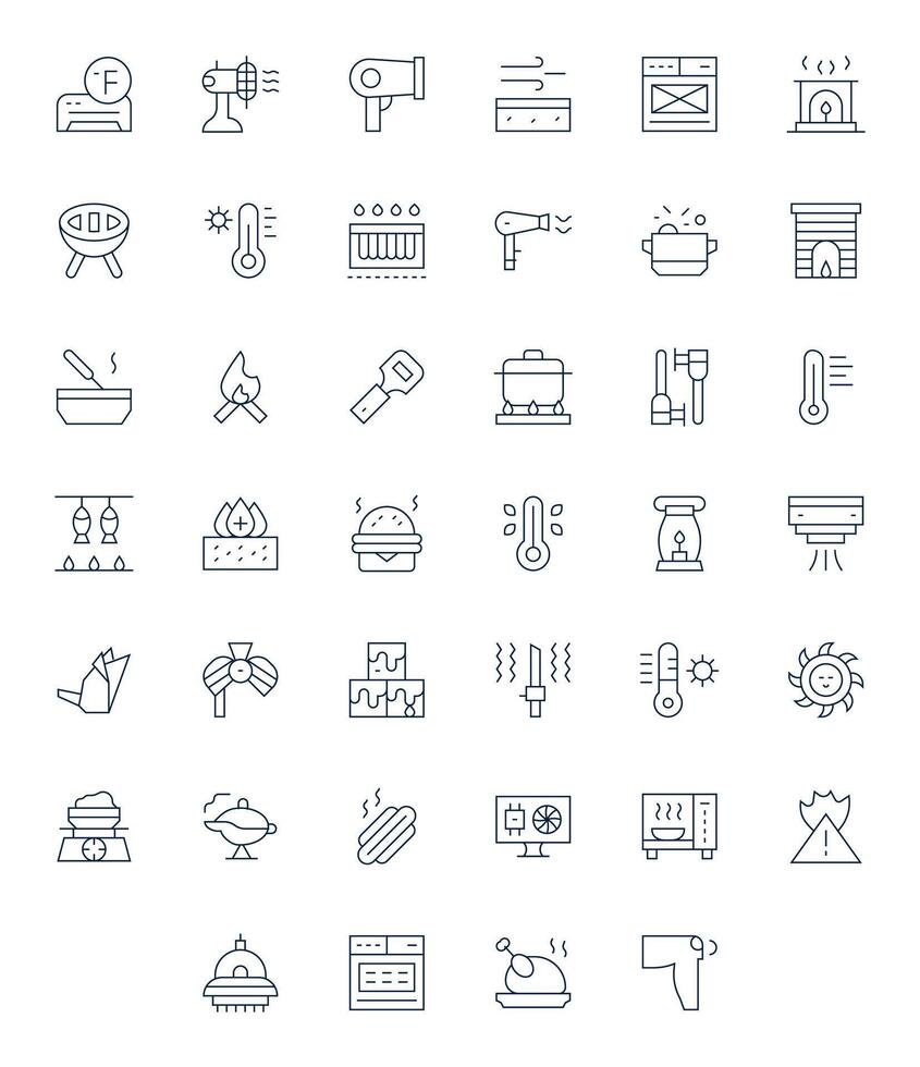 40 Icons for Heat featuring Retina Ready Pixel Optimized Thin Line Graphics Free Vector