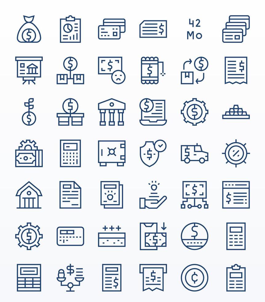 42 Display Perfect Regular Line Icons designed for Financial Interface vector