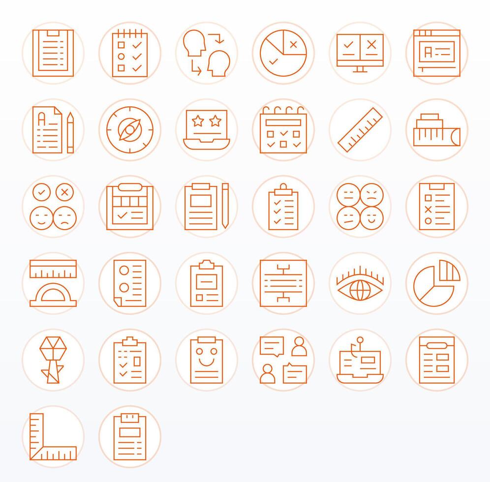 Survey Icon Repository containing 32 Thin Line Retina Ready Pixel Optimized graphics vector