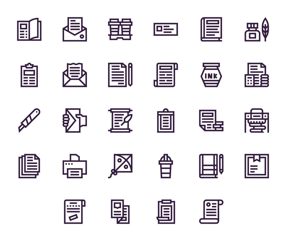 Paper Comprehensive Bundle with 28 Grid Fitted Bold Line High Resolution Icons vector