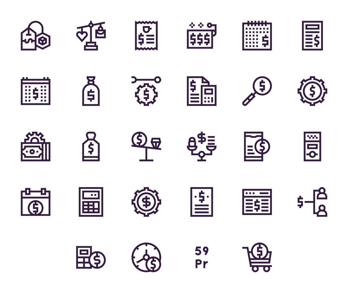 28 Bold Line Pixel Optimized Icons tailored for Cost 256x256 interface vector