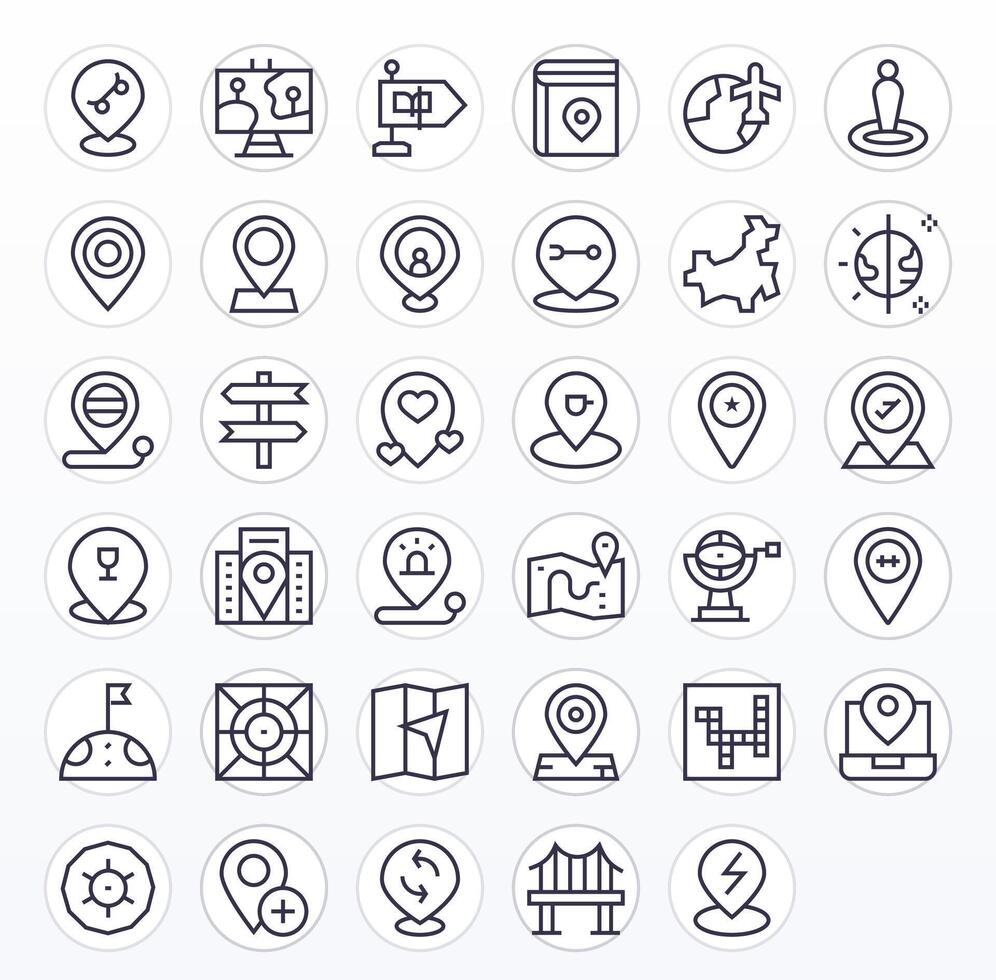 35 Regular Line Grid Fitted Icons crafted for Map High Resolution applications vector