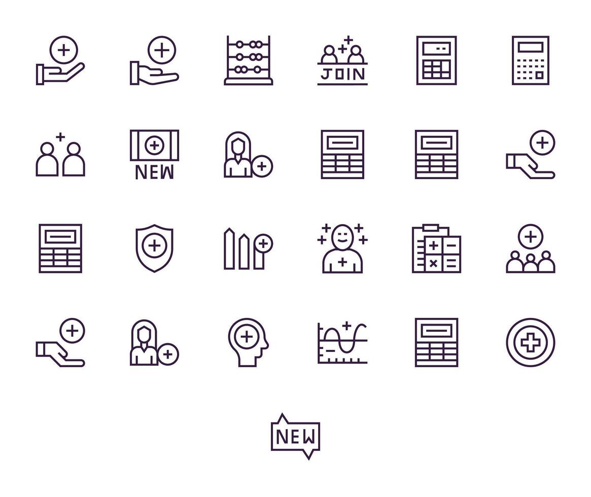 25 Pixel Optimized Icons themed around Addition in 64x64 Regular Line format Free Vector