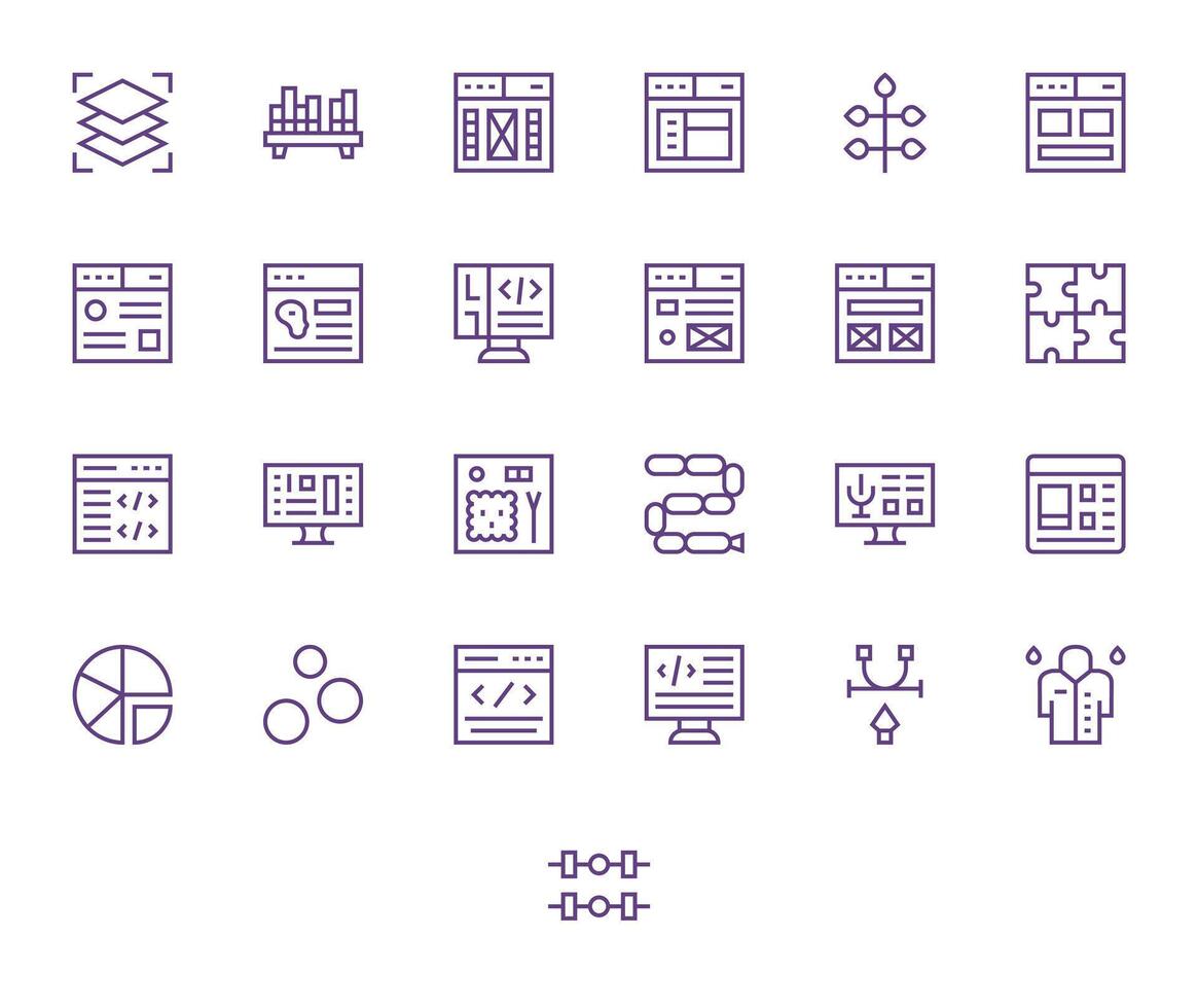 Elements Visual Pack containing 25 Regular Line Pixel Optimized Icons vector
