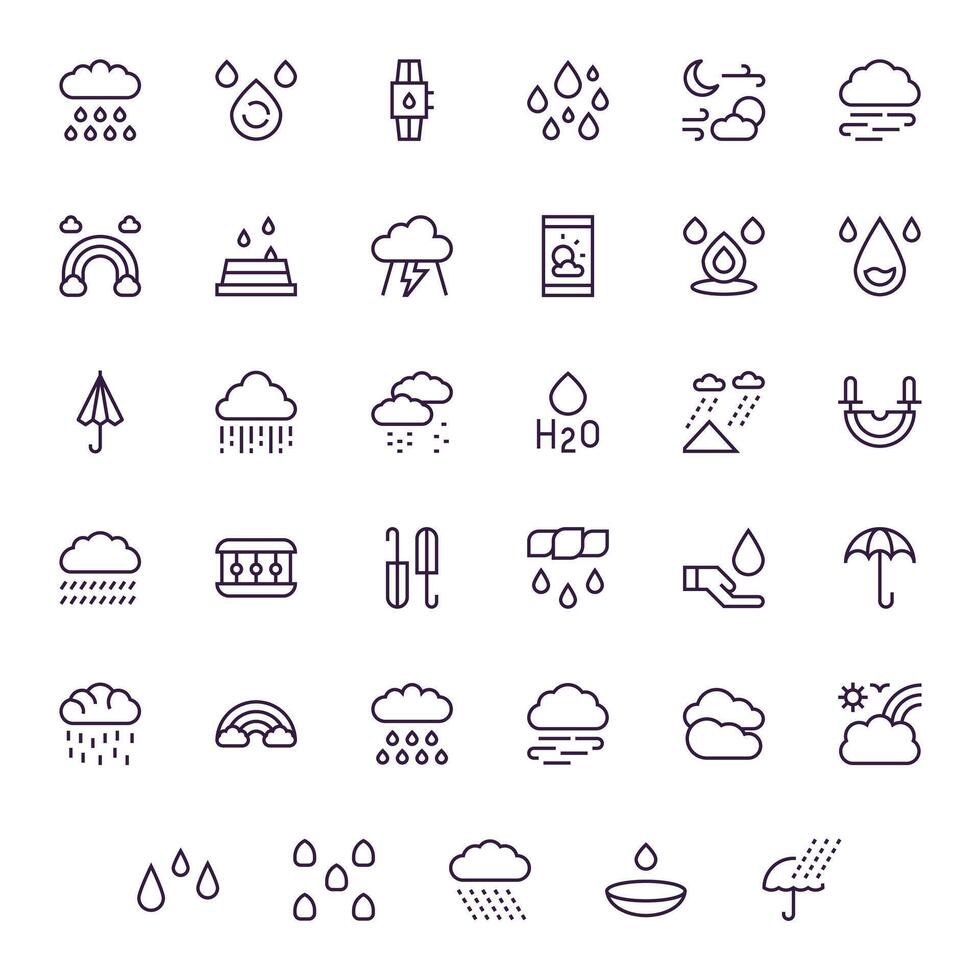 Rain Scalable Set featuring 35 Pixel Optimized Regular Line 128x128 Icons vector