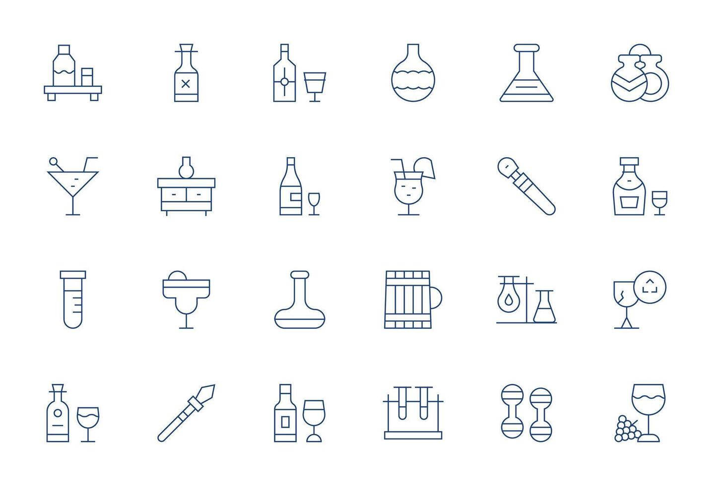 24 Thin Line Icons from Glassware in High Resolution Display Perfect Quality vector
