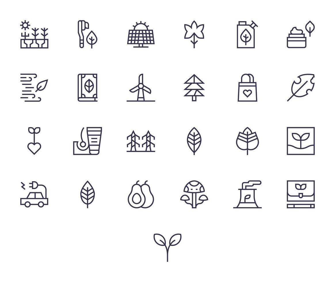 25 Icons for Sustainable optimized in Pixel Aligned High Resolution Regular Line resolution vector