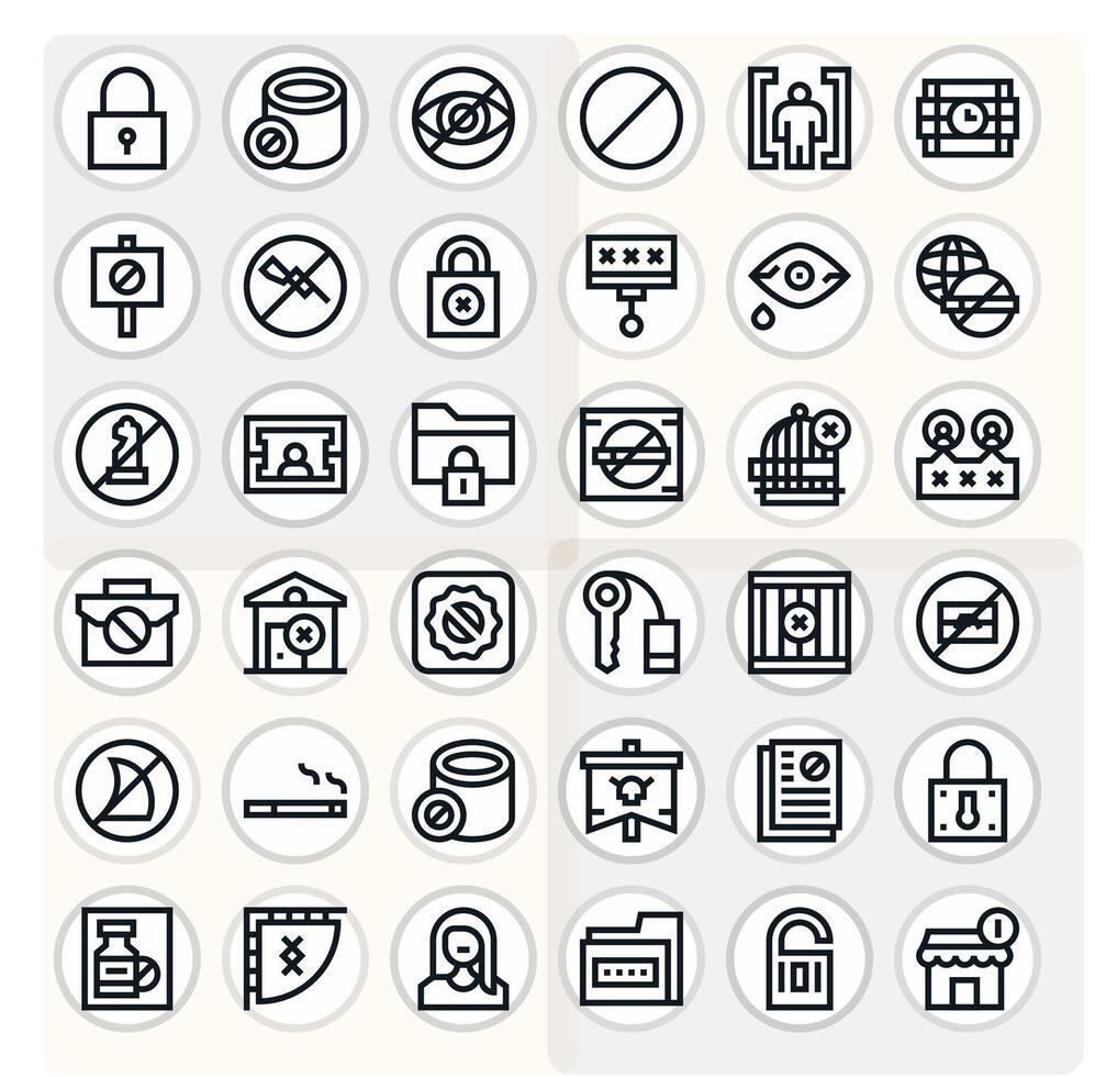 Restricted Access Design Icons featuring 36 Pixel Aligned Bold Line Style vector