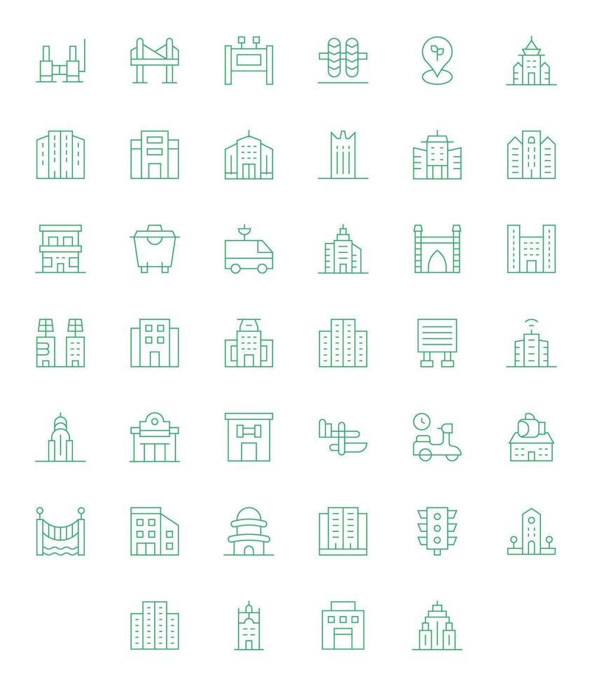 Urban Scalable Set featuring 40 Display Perfect Thin Line 64x64 Icons Free Vector