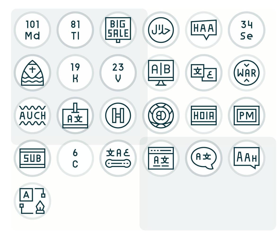 25 Icons for Font optimized in PIXEL Perfect High Resolution Regular Line resolution vector
