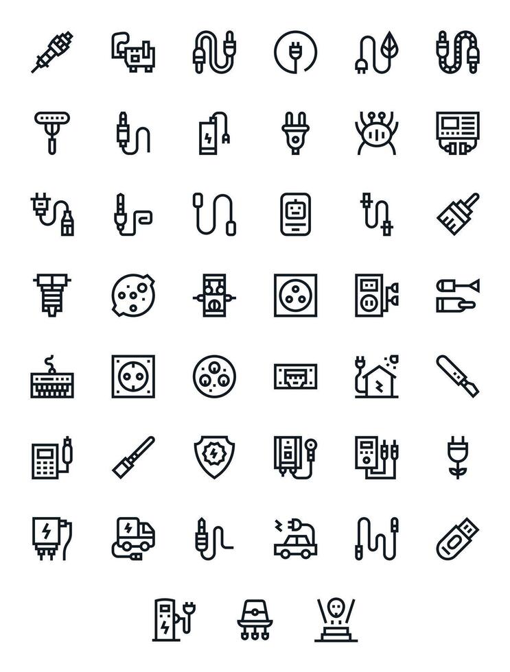 Plug Icon Set with 45 Bold Line High Resolution Editable Graphics vector