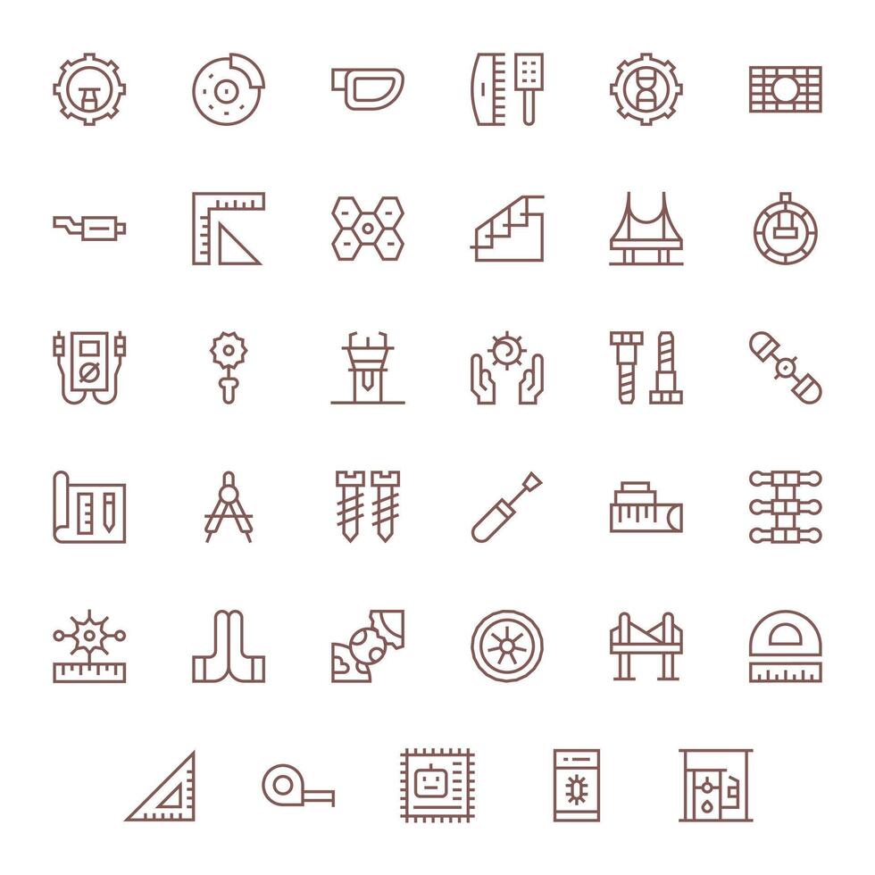 35 Regular Line Icons for Engineering in crisp 256x256 Detail Enhanced resolution Free Vector