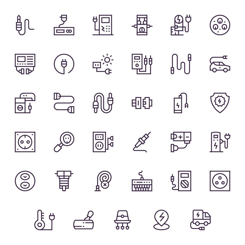 35 Regular Line Icons for Plug in crisp High Resolution Display Perfect resolution vector