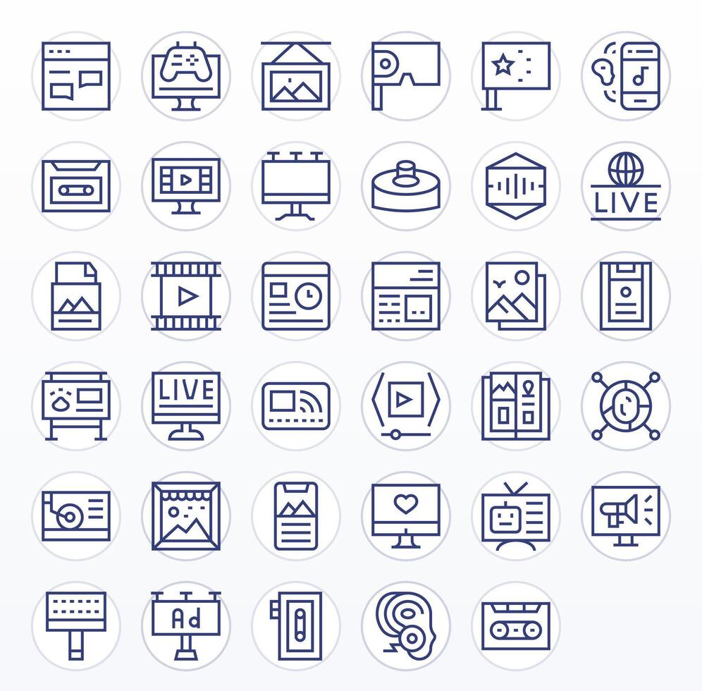 35 High Resolution Icons for Media in Editable Regular Line Format vector