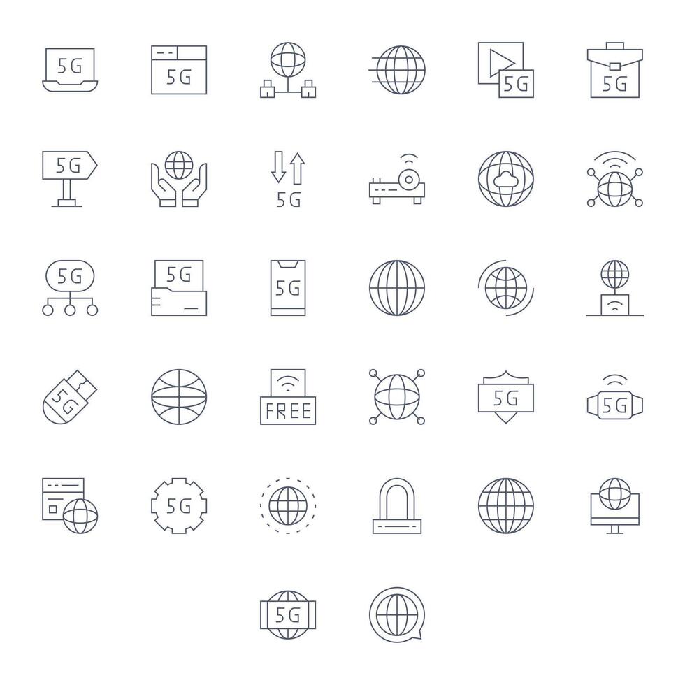 32 Grid Fitted Thin Line Icons designed for Internet Access Interface Free Vector