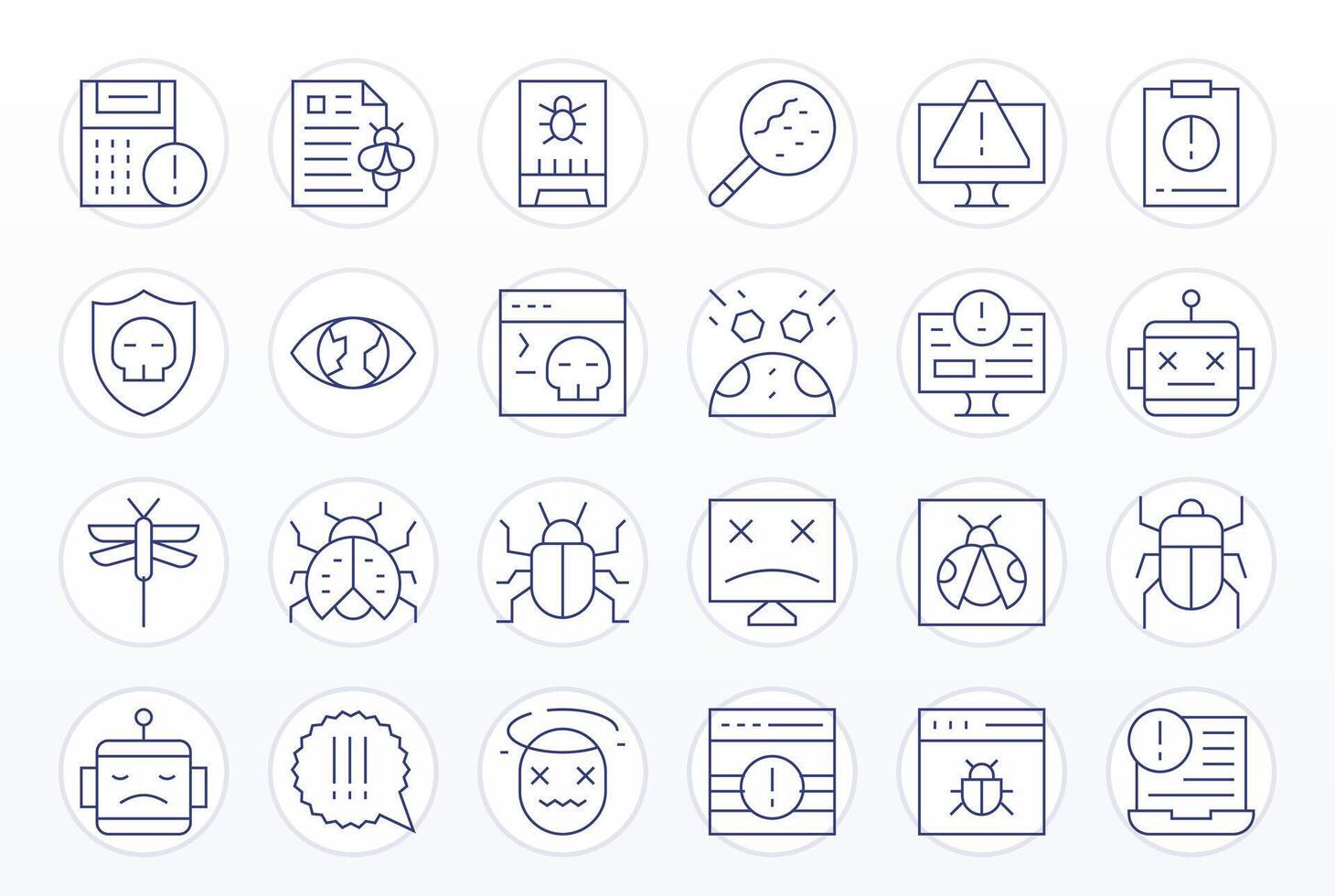 Bug Premium Bundle with 24 High Resolution Grid Fitted Thin Line Icons Free Vector