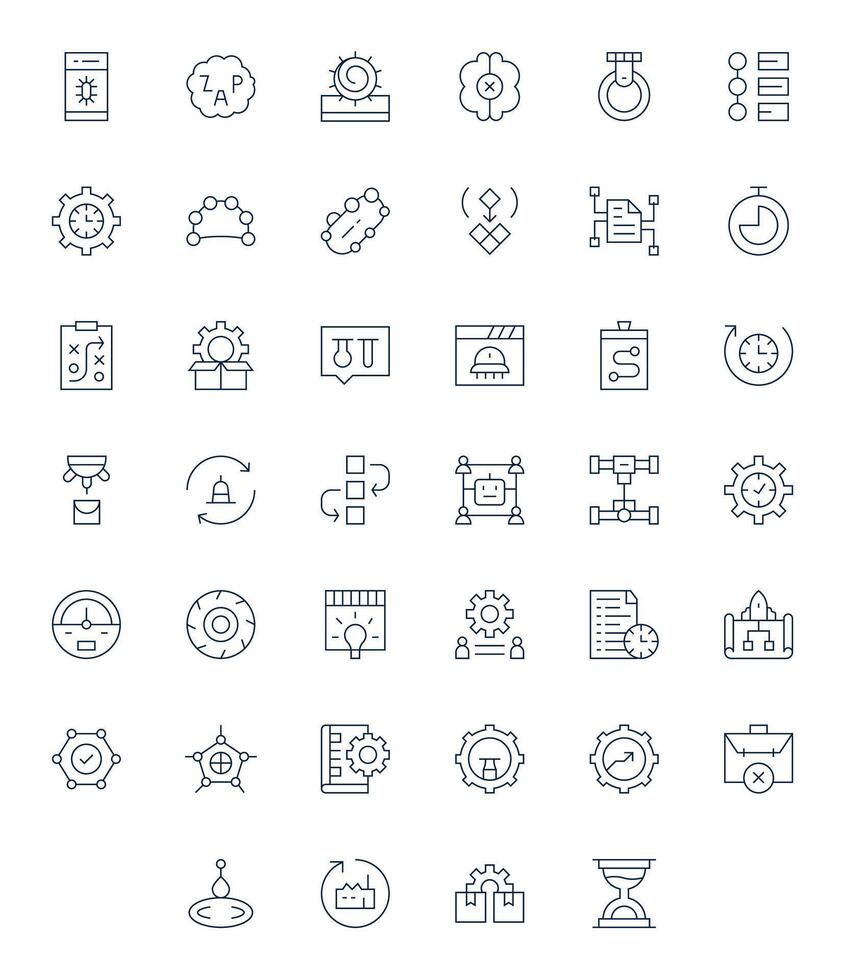 Process Visual Pack containing 40 Thin Line Pixel Aligned Icons Free Vector