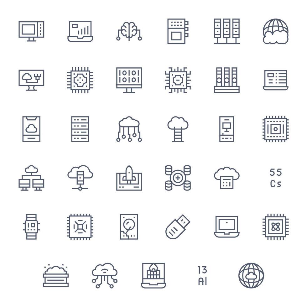 35 Icons for Computing featuring 256x256 Grid Fitted Regular Line Graphics vector