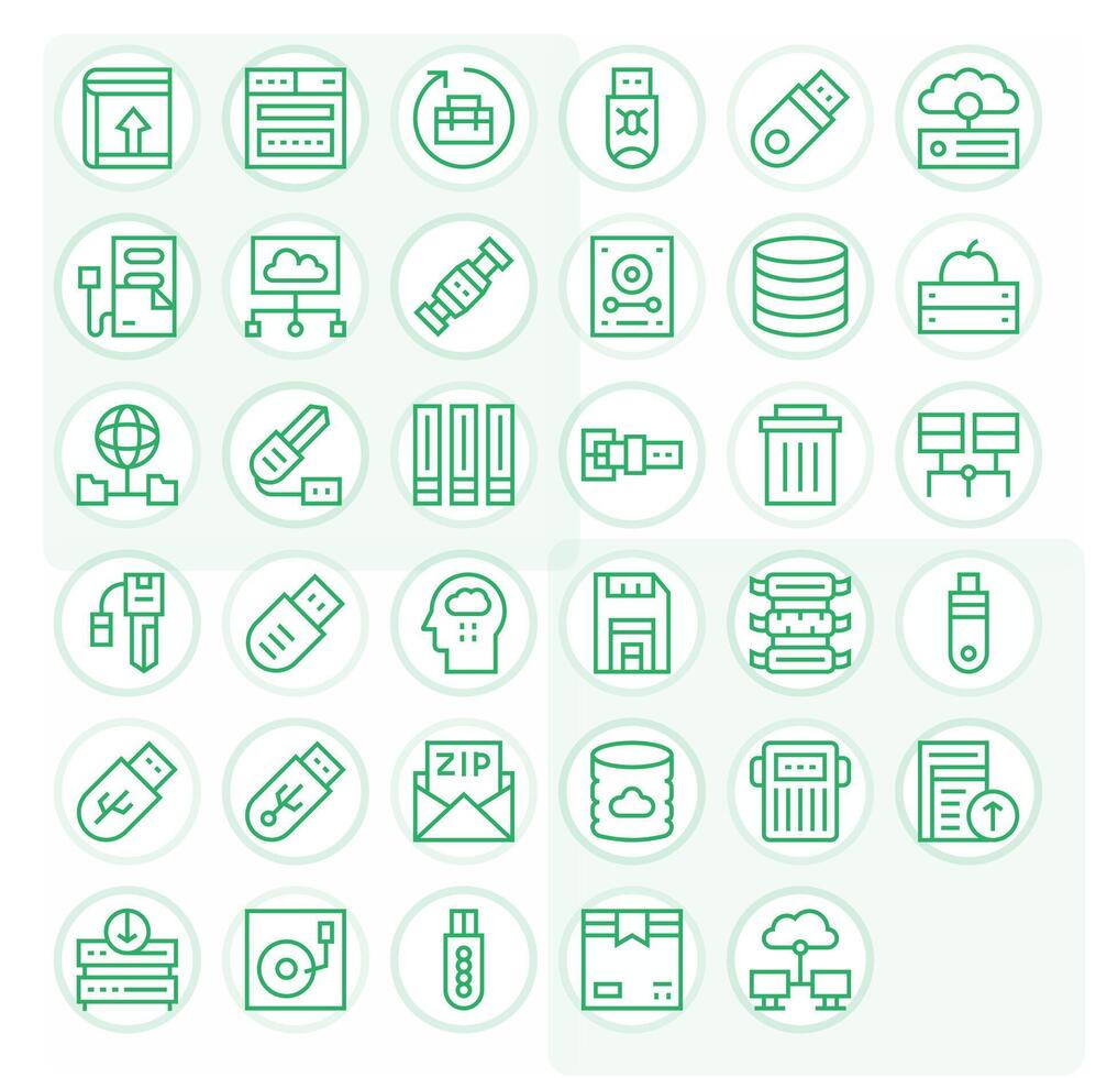 35 Pixel Optimized Regular Line Icons from Digital Storage Collection vector