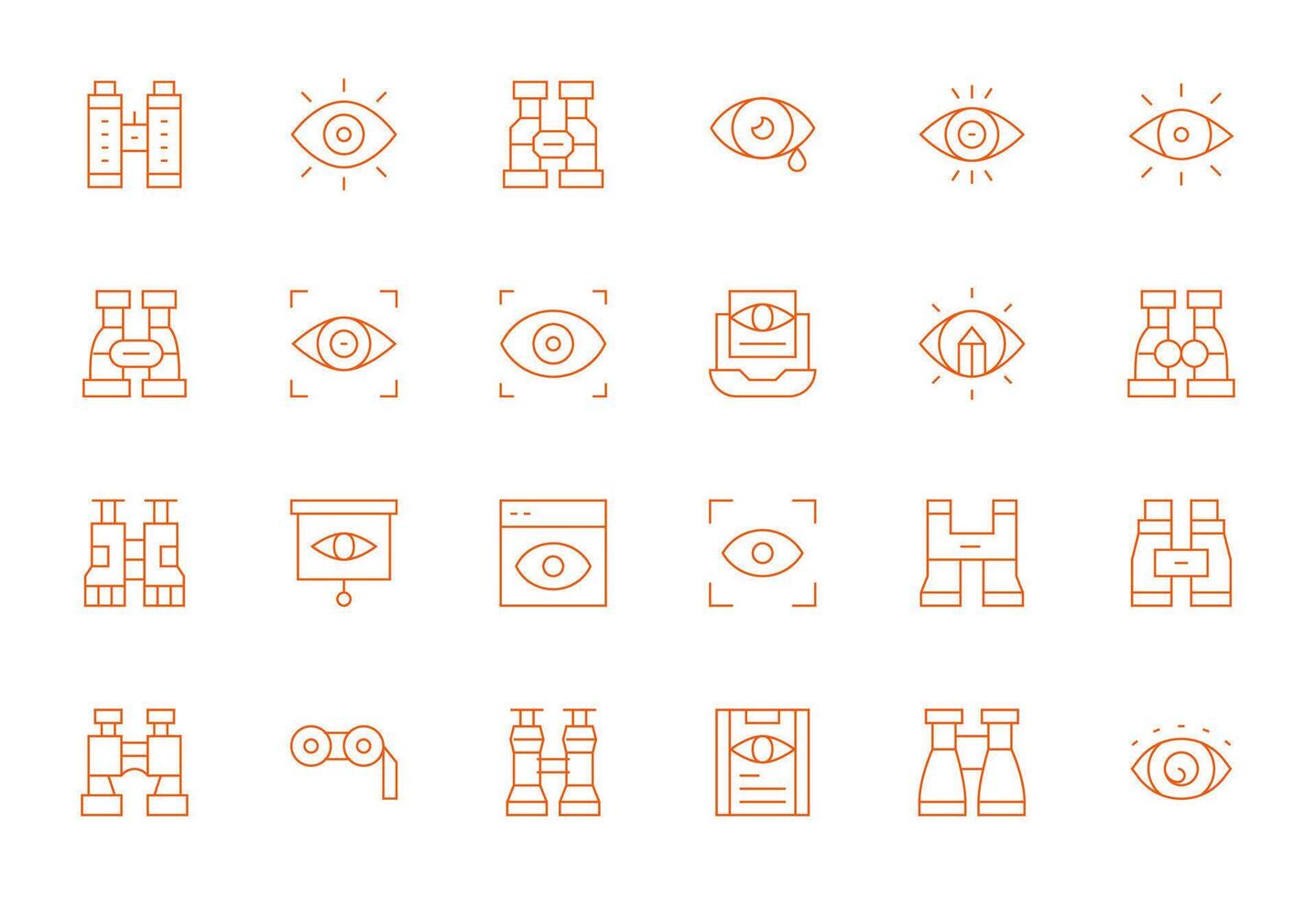 24 Pixel Optimized Retina Ready Icons for Observe in elegant Thin Line design vector
