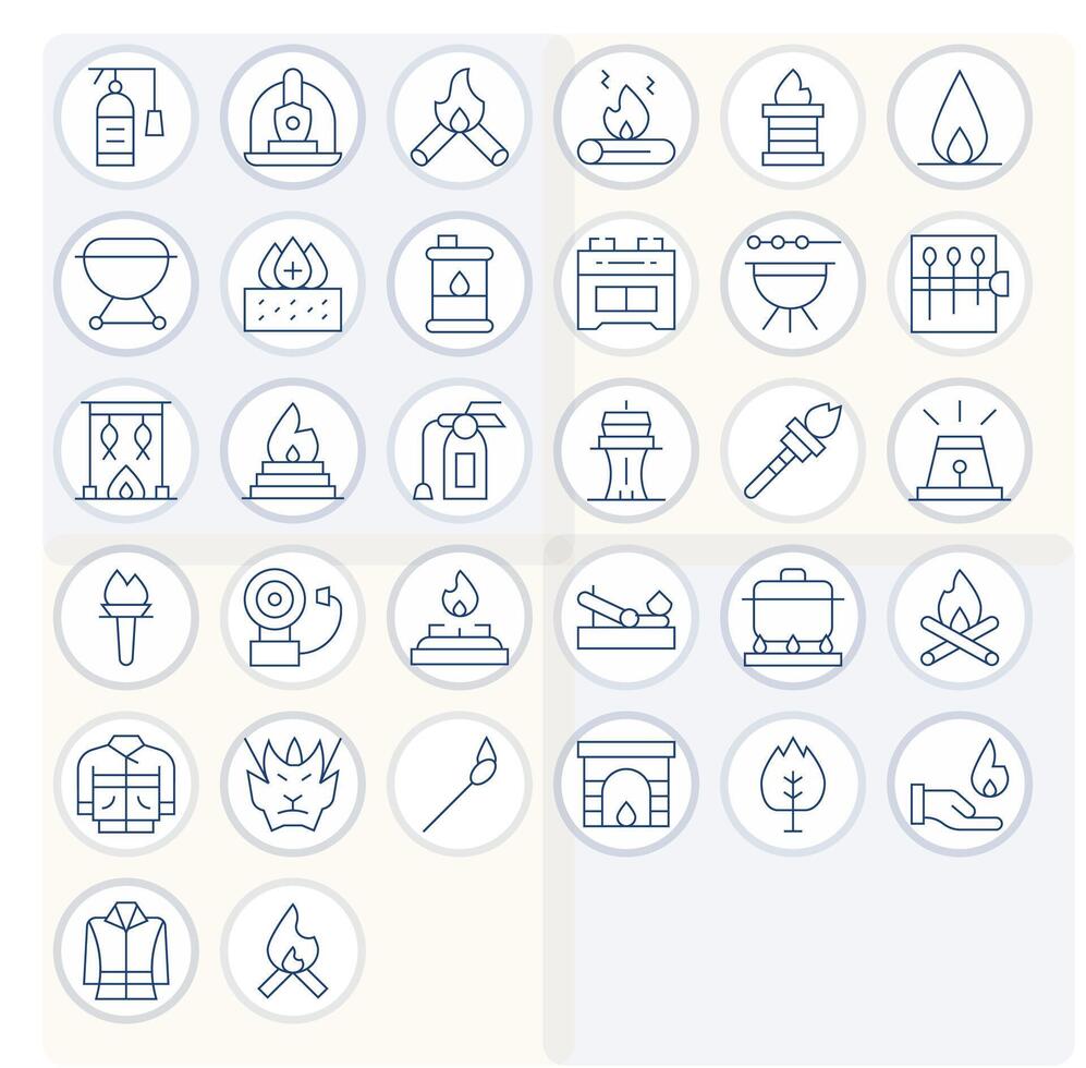 Fire Design Icons featuring 32 Pixel Optimized Thin Line Style vector