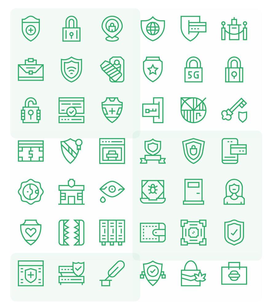42 Regular Line Icons designed for Secure in 64x64 PIXEL Perfect format vector