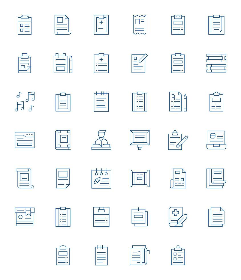 Notes Icon Set with 40 Thin Line 256x256 Editable Graphics Free Vector