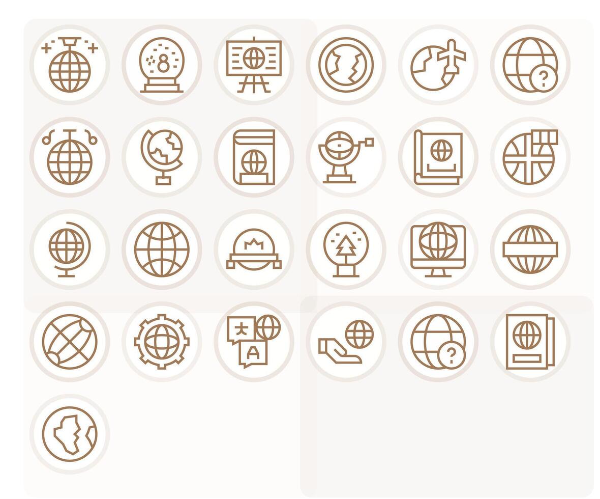 Globe Professional Set with 25 Regular Line Pixel Optimized 128x128 Icons vector