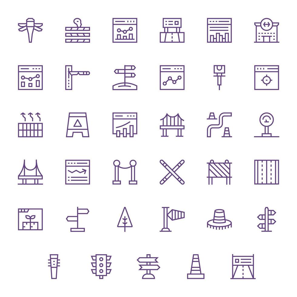 35 Grid Fitted Regular Line Icons designed for Traffic Interface Free Vector