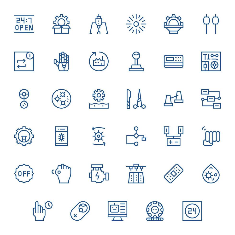 Operation Design Icons featuring 35 Pixel Optimized Regular Line Style vector