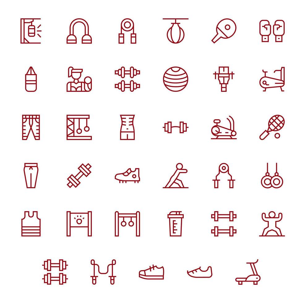 Workout Scalable Set featuring 35 Pixel Optimized Regular Line High Resolution Icons Free Vector