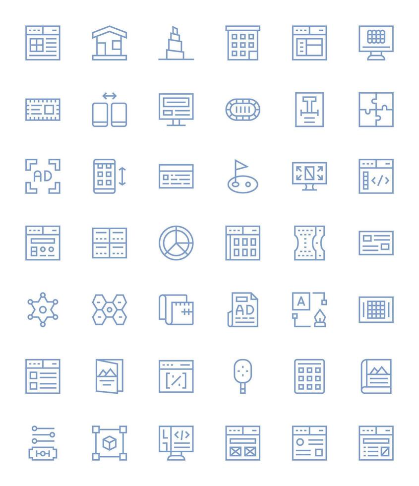 42 Regular Line Display Perfect Icons tailored for Layout 256x256 interface Free Vector