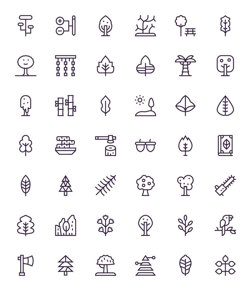 42 Icons inspired by Tree in PIXEL Perfect High Resolution Regular Line quality Free Vector