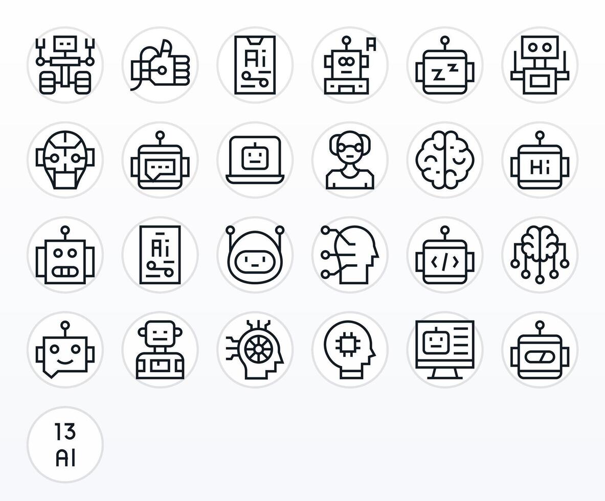 25 64x64 Icons for Artificial Intelligence in Grid Fitted Regular Line Format vector
