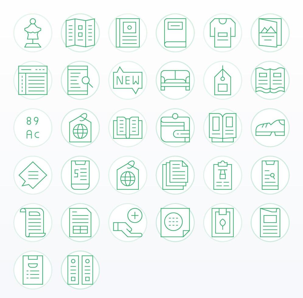 32 High Resolution Thin Line Icons optimized for Catalog Grid Fitted display vector