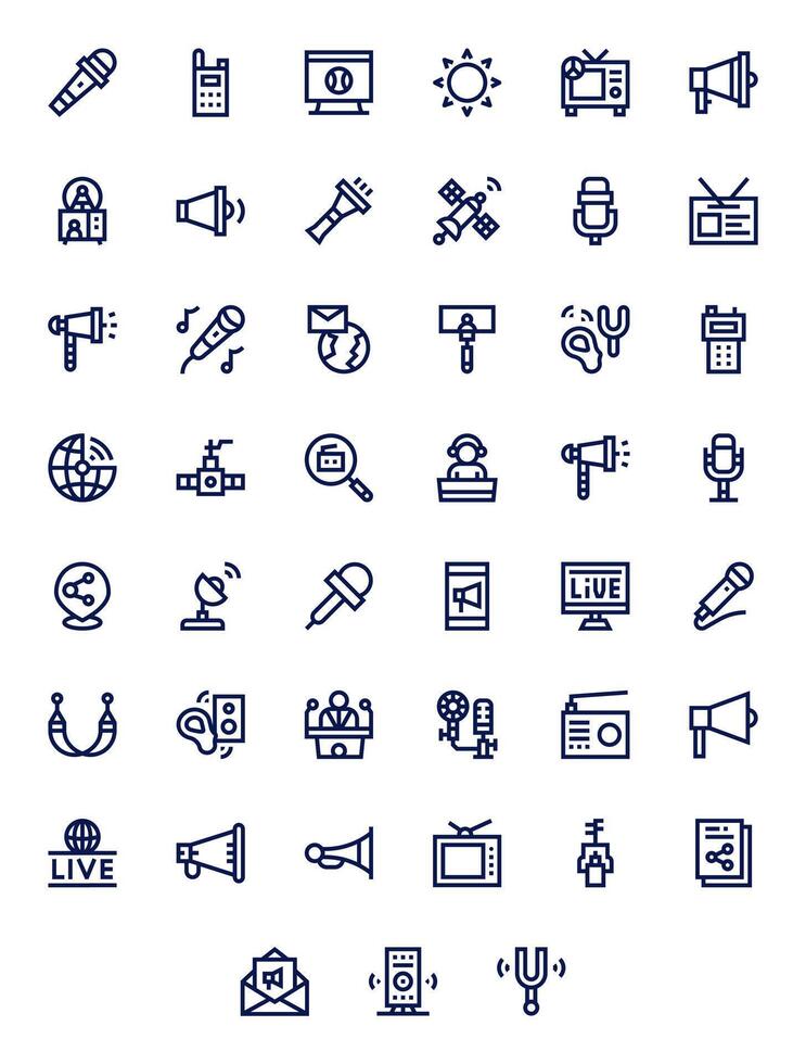 45 Editable Bold Line Icons designed for Broadcast Interface Free Vector