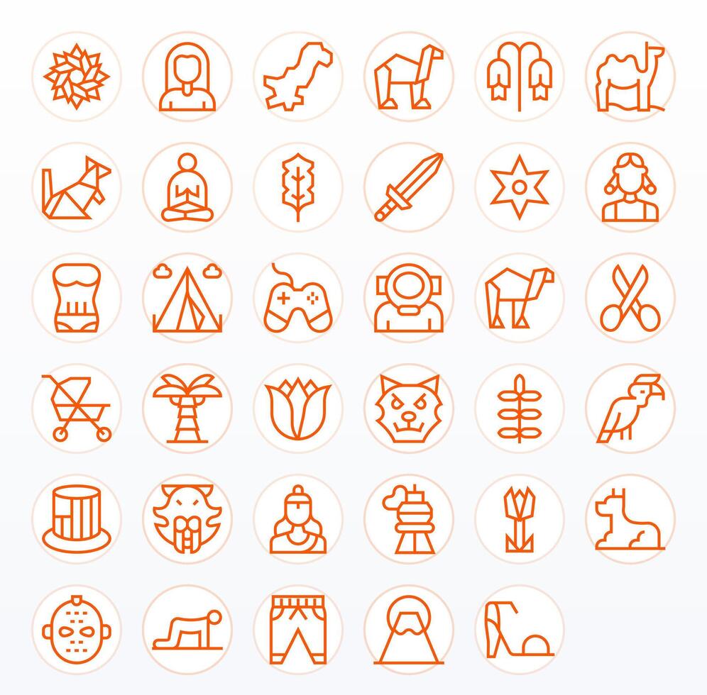 Silhouette Comprehensive Bundle with 35 Grid Fitted Regular Line High Resolution Icons Free Vector