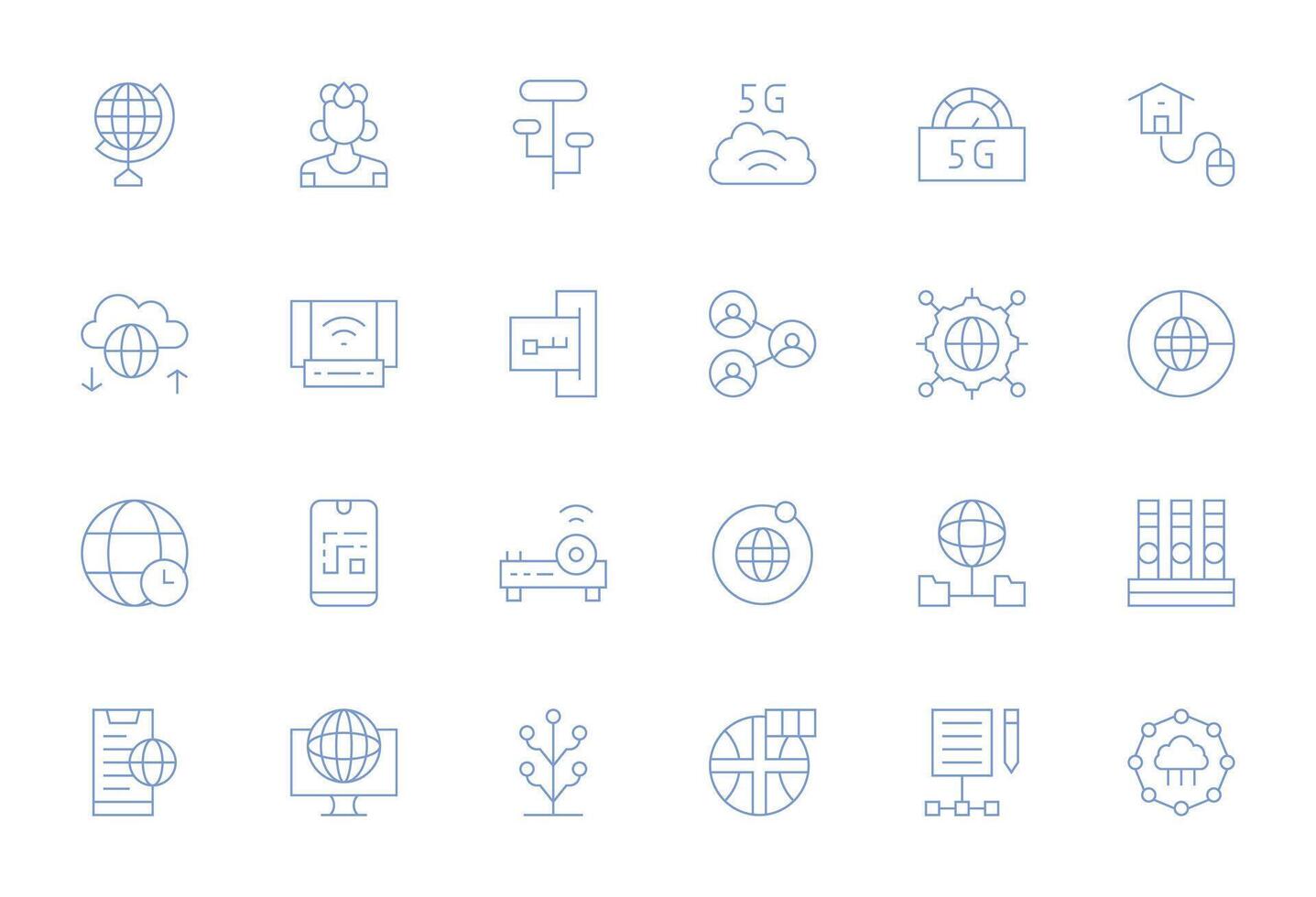 24 Thin Line Detail Enhanced Icons crafted for Network 256x256 applications Free Vector