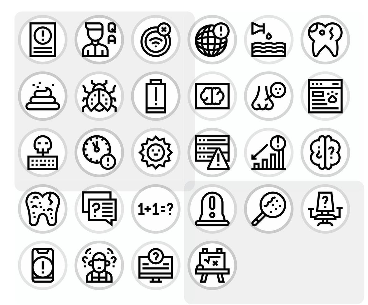 28 Grid Fitted Bold Line Icons designed for Problem Interface vector