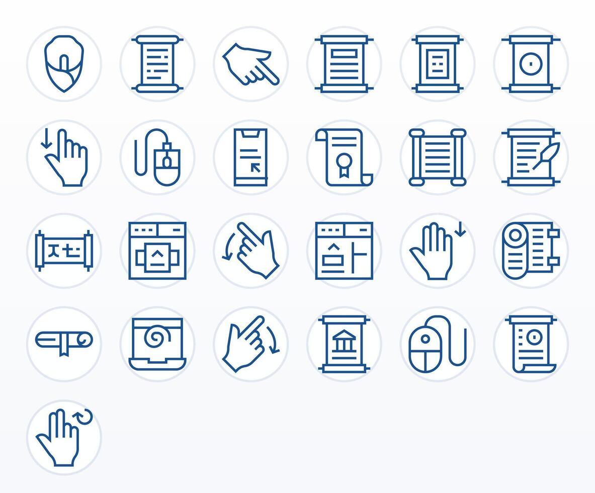 Scroll Comprehensive Bundle with 25 Editable Regular Line 64x64 Icons Free Vector