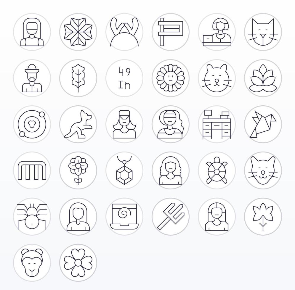 32 128x128 Thin Line Icons optimized for Linear Grid Fitted display vector