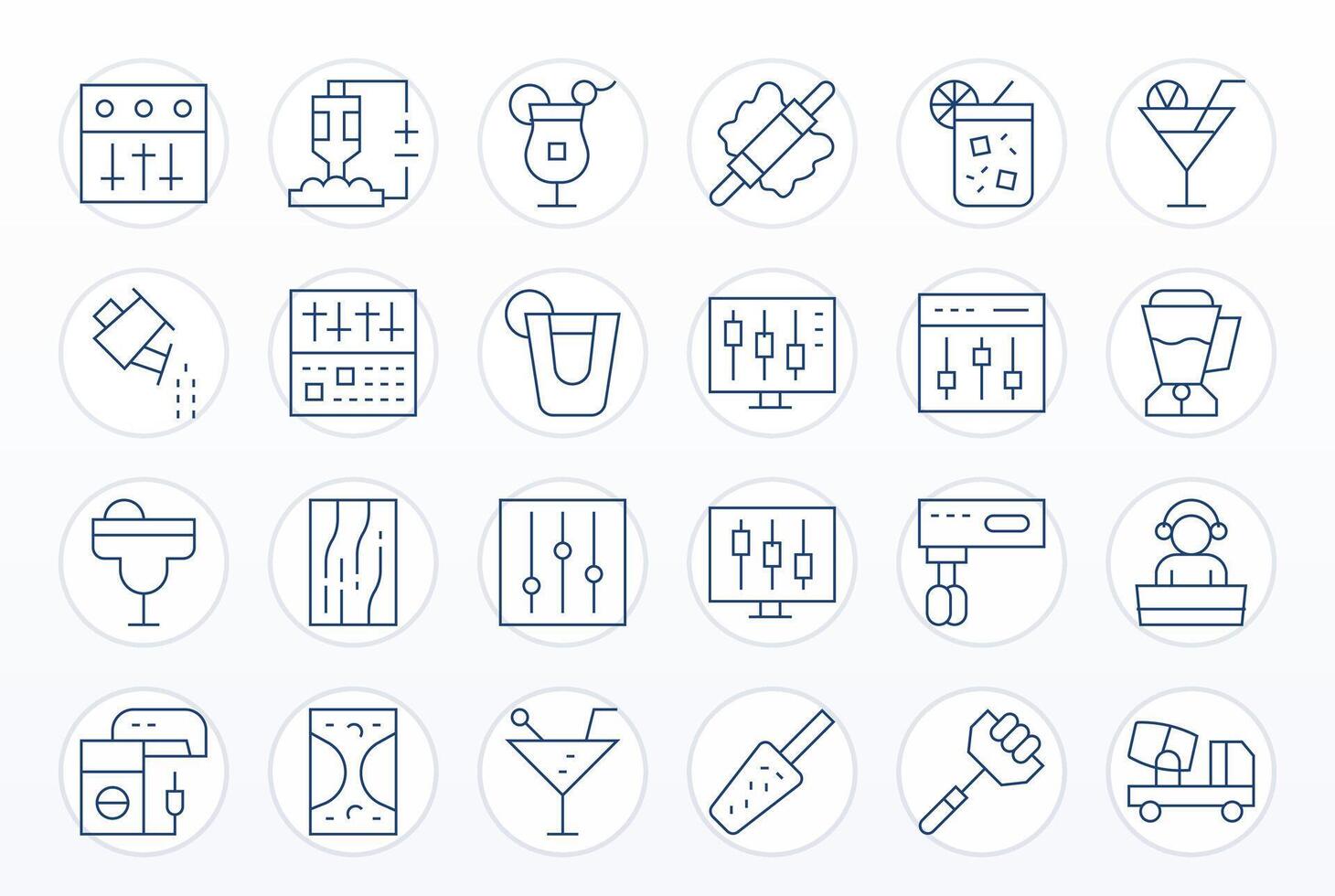 Mixer Icon Toolkit featuring 24 Display Perfect 64x64 Thin Line elements vector
