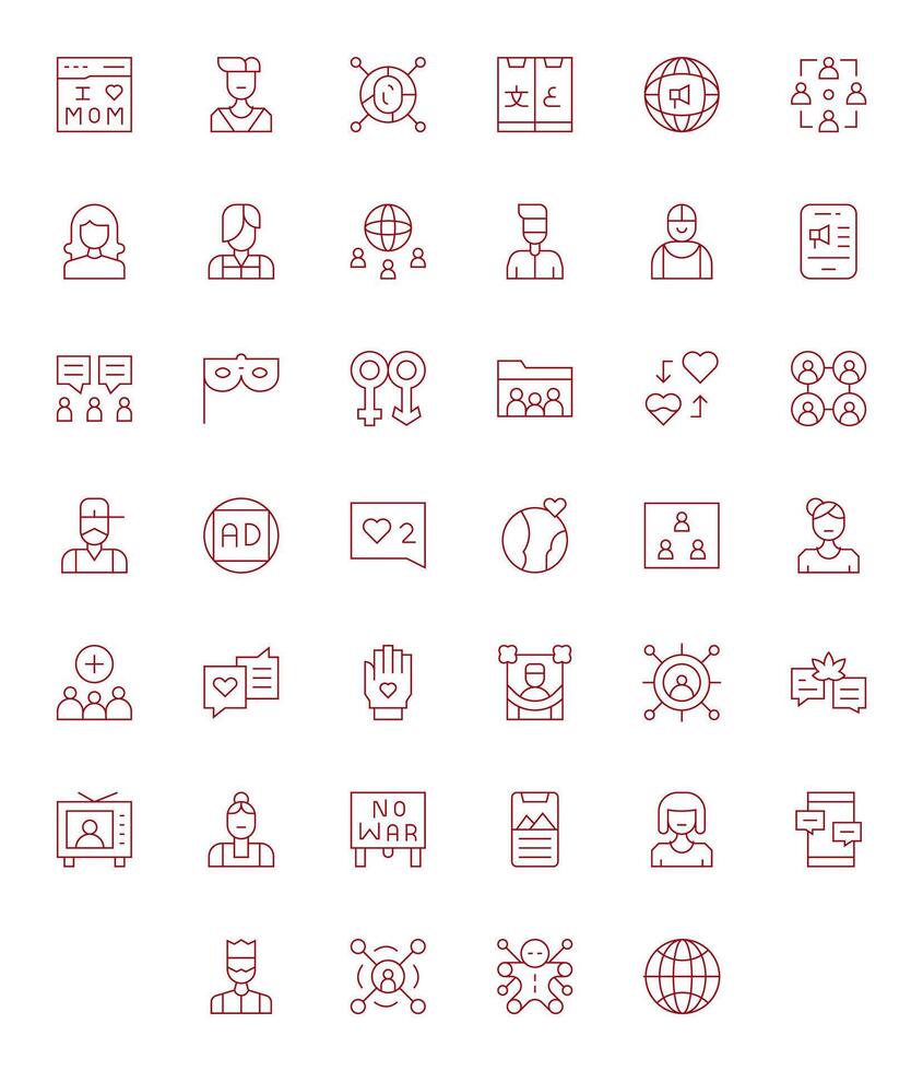 Social Complete Package with 40 High Resolution Thin Line Pixel Optimized Icons vector