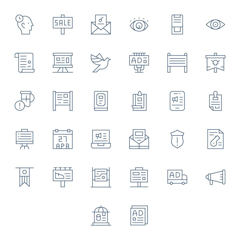 32 Icons for Notice featuring 128x128 Display Perfect Thin Line Graphics vector