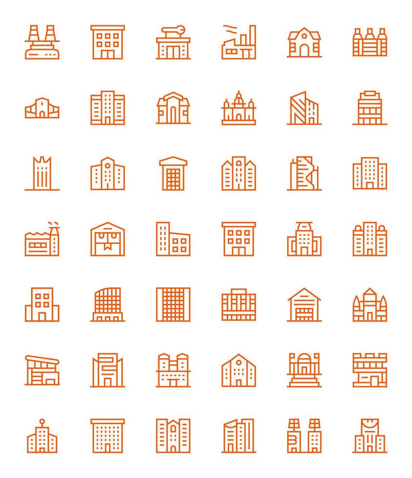 42 Grid Fitted Icons themed around Commercial Building in High Resolution Regular Line format Free Vector