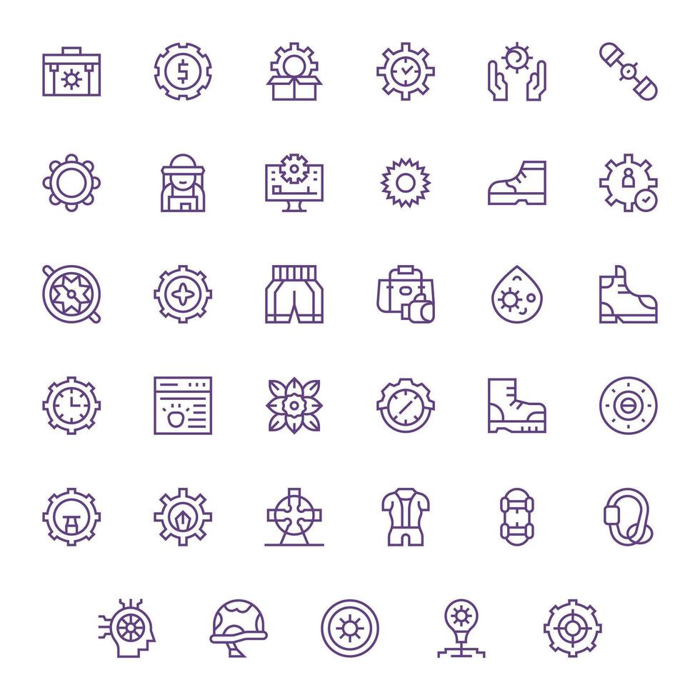 Gear Icon Set with 35 Regular Line 256x256 Pixel Optimized Graphics Free Vector